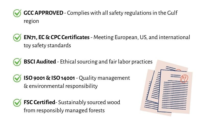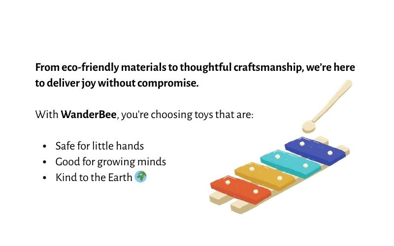 At WanderBee, every toy is more than just fun; it’s a promise. A promise of safety, quality, and care for our planet. A promise of safety, quality, and care for our planet. We handpick each toy based on strict international standards, so your little ones can explore, learn, and play with total peace of mind.